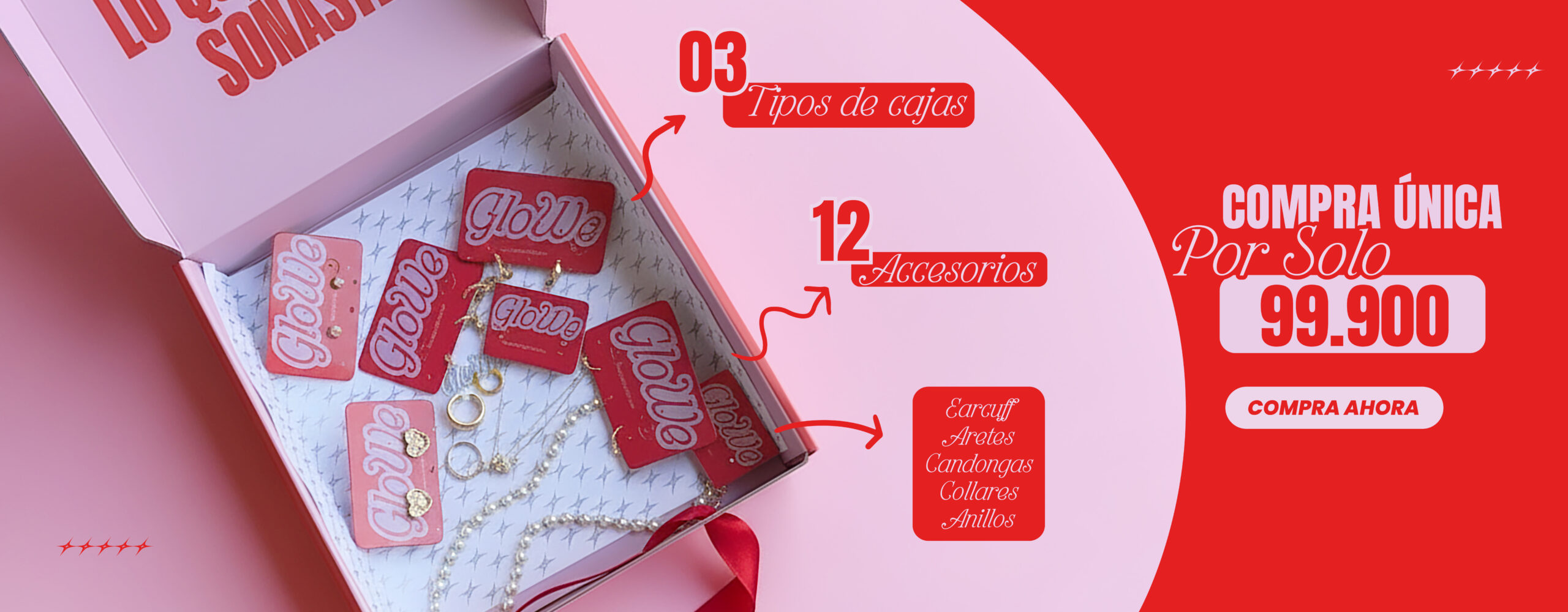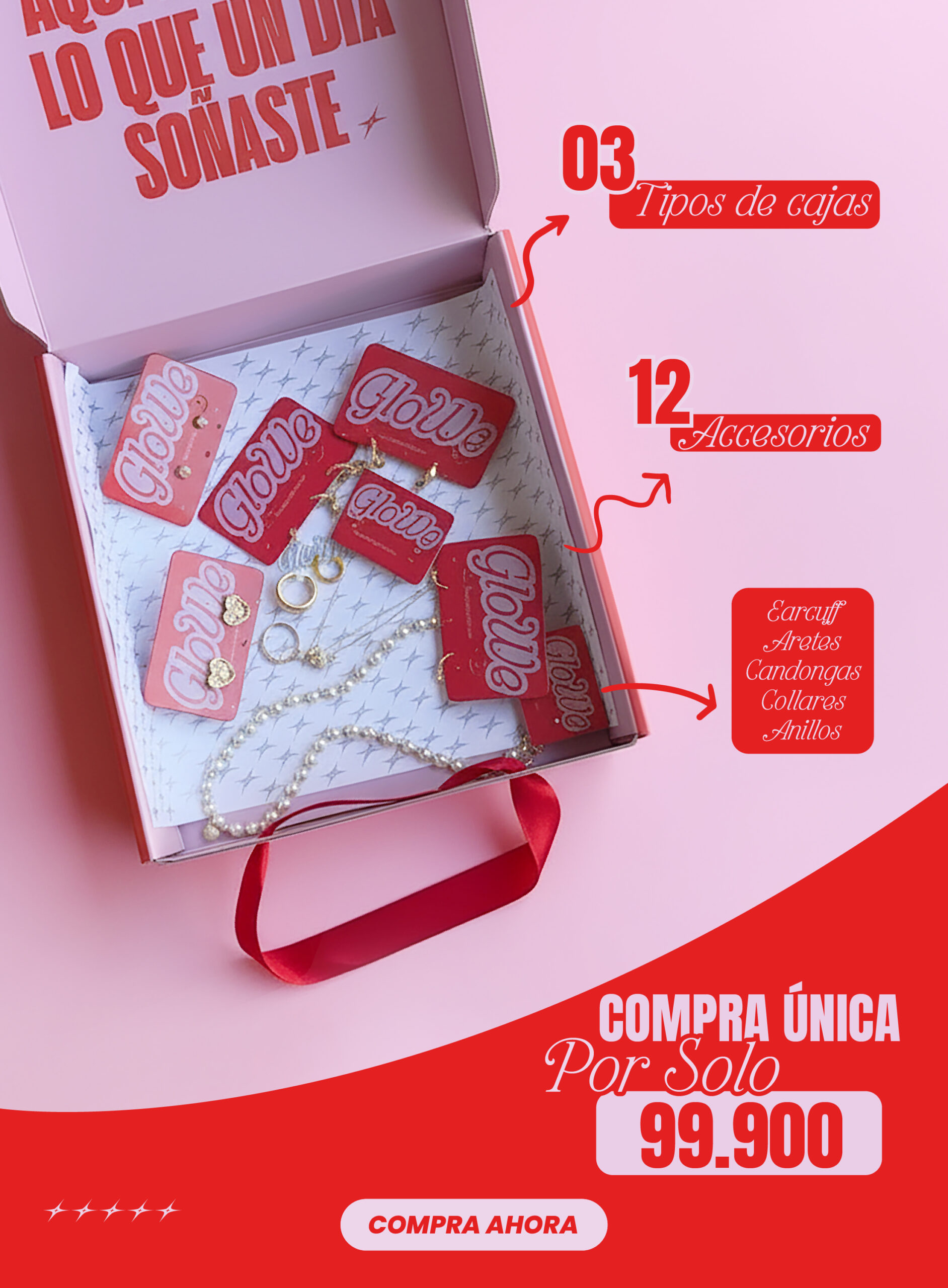Somos una comunidad que impulsa tu emprendimiento con una Box mensual de 10 a 12 accesorios de joyería listos para vender, empaques premium y envío gratis a todo el país. Recibe, vende y gana hasta 3 veces tu inversión, mientras acumulas puntos, accedes a masterclasses, descuentos y beneficios exclusivos de la comunidad #WeGloWe.